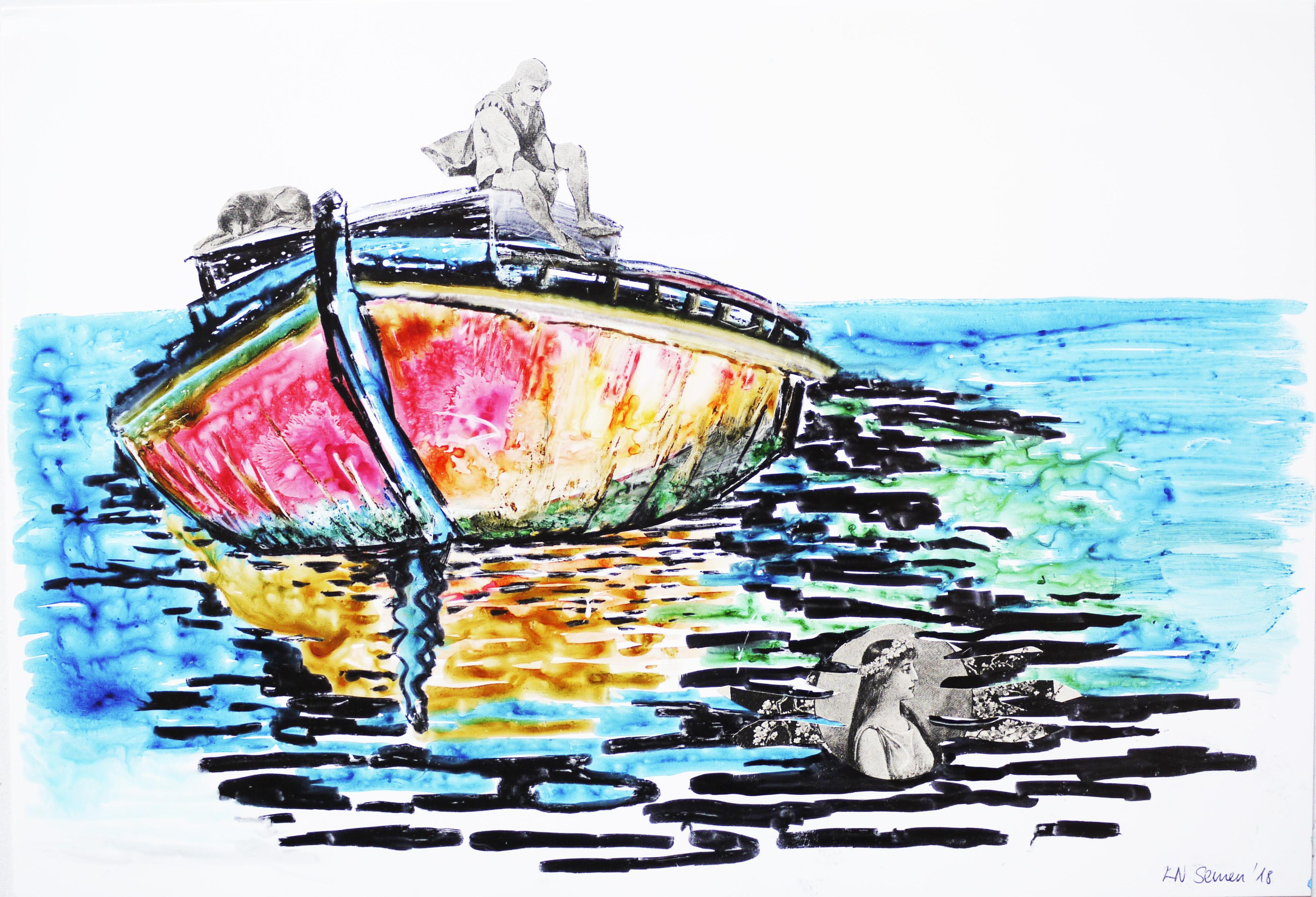 Collage, Filzstifte auf wasserfestem Papier